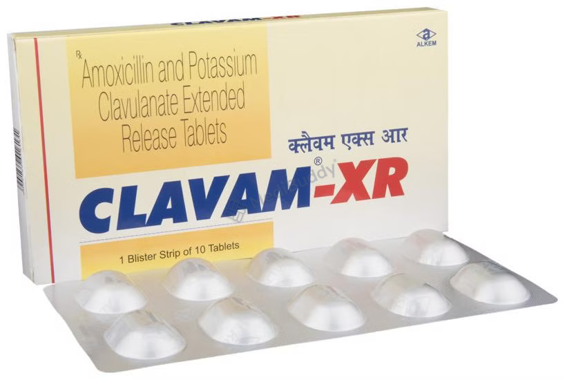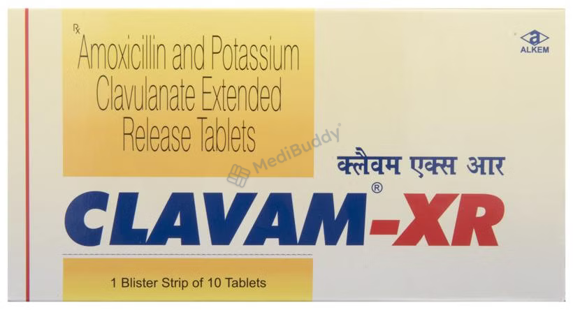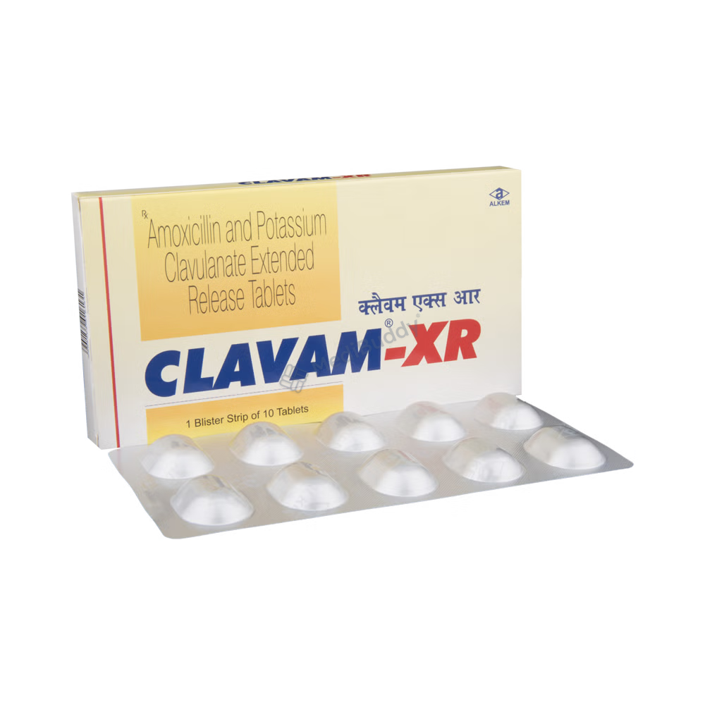 Clavam-XR Tablet is a combination of Amoxicillin and Clavulanic acid, belonging to the group of antibiotics used to treat bacterial infections affecting various parts of the body. Bacterial infections occur when harmful bacteria invade the body, replicating rapidly and causing illness. The medication functions by preventing the formation of bacterial cell walls, essential for bacterial survival, and enhancing the activity of Amoxicillin against bacteria. This dual action helps eradicate the infection effectively.