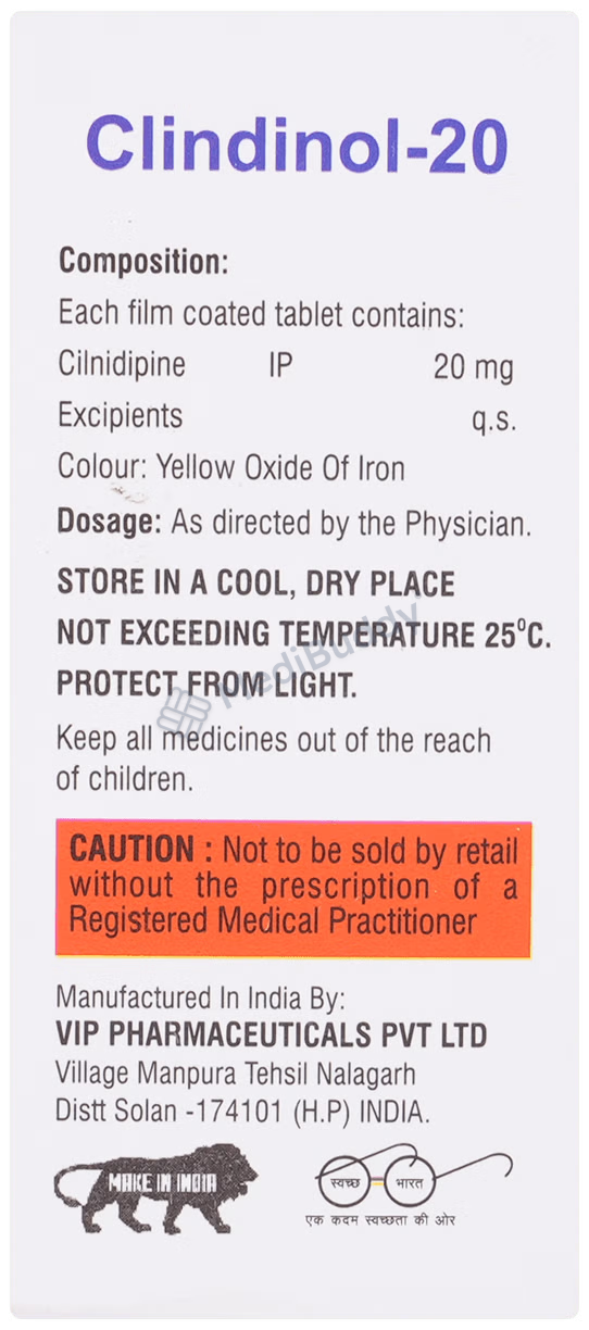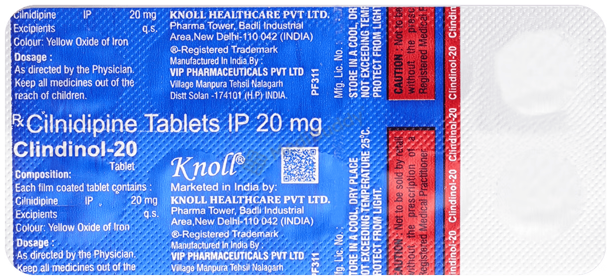 Clindinol 20mg Tablet is a medication used to treat high blood pressure, also known as hypertension. It falls under the class of medications called calcium channel blockers, which effectively work to reduce blood pressure levels. Lowering blood pressure is crucial in preventing heart attacks and strokes, making Clindinol 20mg Tablet a vital medication for managing cardiovascular health. This tablet may also be prescribed to prevent angina, which is chest pain related to heart issues.