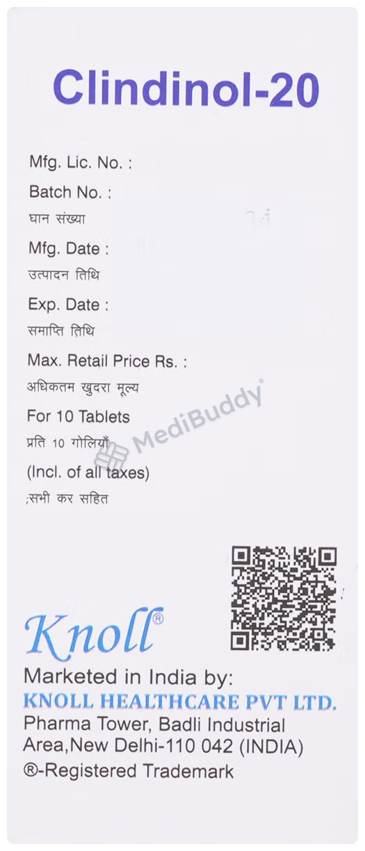 Information about the use of Clindinol 20mg Tablet during pregnancy is not available. Consult your doctor before taking this medication.