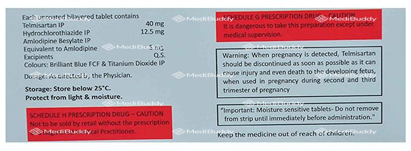 Telmisartan(40mg) + Amlodipine(5mg) + Hydrochlorothiazide(12.5mg)