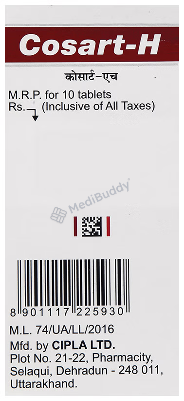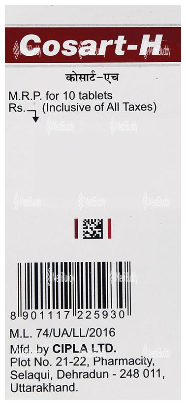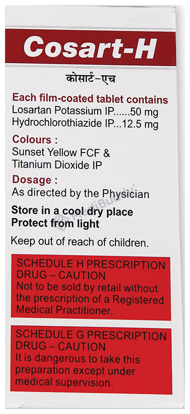 Cosart-H Tablet is not recommended during pregnancy and it's crucial to consult your doctor before use if you have kidney or liver disease, heart issues, or diabetes. Alcohol consumption while on this medication may further lower blood pressure and lead to adverse effects. Overall, Cosart-H Tablet is an effective treatment for hypertension, but it's important to follow your healthcare provider's guidance and report any concerns or side effects promptly.