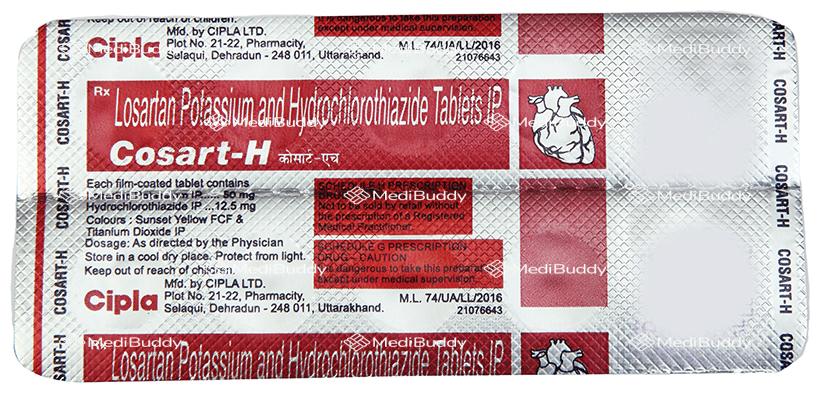 Before taking Cosart-H Tablet, it's crucial to heed certain warnings. This medication, a combination of two drugs, is utilized to manage high blood pressure, guarding against potential heart issues like heart attacks, strokes, and kidney problems if left untreated. It can be consumed with or without food, but the dosage must align with your specific condition and response. Maintain a consistent daily intake time as advised by your physician. Due to its diuretic content, which increases urination, avoid taking it close to bedtime. Continuous use is paramount until your doctor advises otherwise, as stopping may heighten the risk of heart attack or stroke. Embrace regular intake for optimal efficacy, even if symptoms improve, as high blood pressure is often asymptomatic. Possible side effects, mainly dizziness, might occur, signaling the need for medical consultation to discuss alterations in dosage or medications. Not recommended during pregnancy, this medication warrants caution for individuals with particular health concerns such as kidney or liver issues, heart ailments, or diabetes. Refrain from alcohol consumption, which can intensify the medicine's blood pressurelowering effects and potentially instigate adverse reactions.