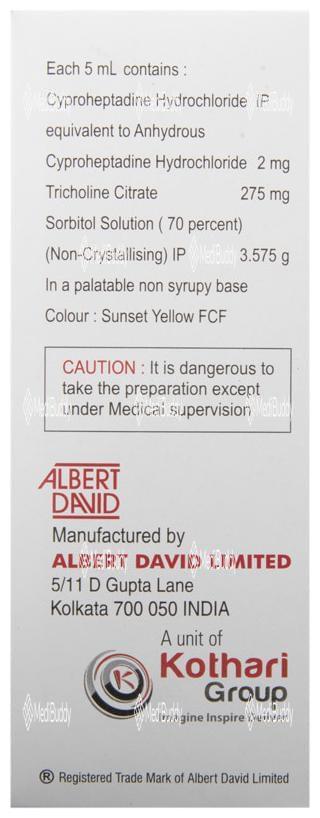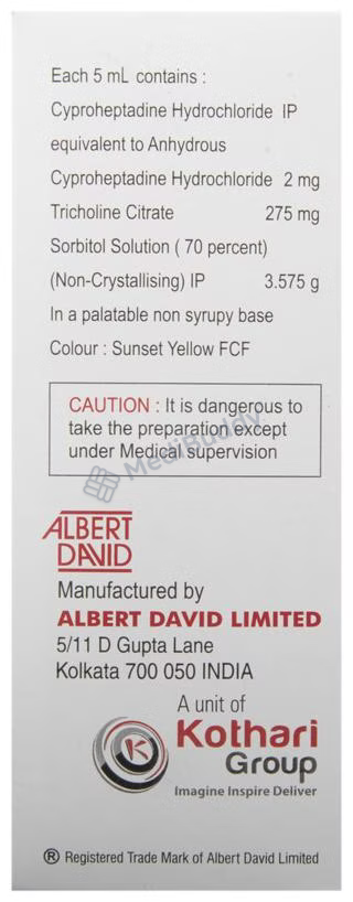 Cyproheptadine(2mg/5ml) + Tricholine Citrate(275mg/5ml) + Sorbitol(3.575gm/5ml)