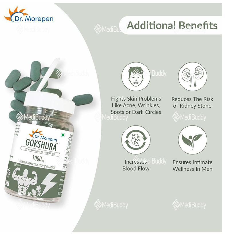 DR. MOREPEN Gokshura Tablets for Men, Tribulus Terrestris for Improved Vigour, Vitality, Desire & Drive - 60 Veg Tablets