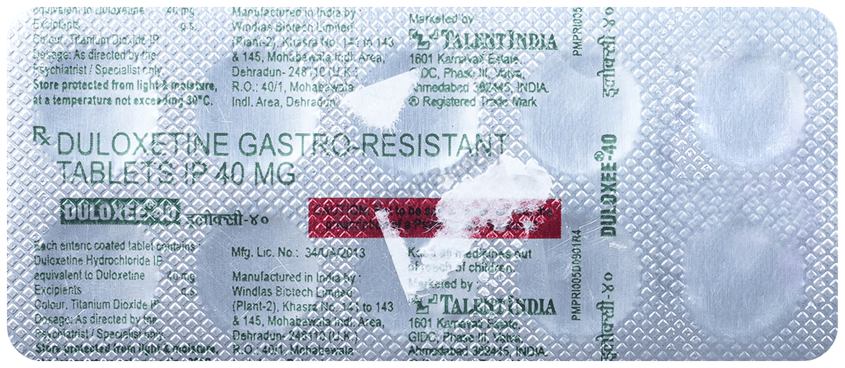 Duloxee 40 Tablet is a medication used to treat various conditions such as depression, anxiety disorder, diabetic nerve pain, fibromyalgia, neuropathic pain, and stress urinary incontinence. It contains Duloxetine, which is classified as an antidepressant. Depression is a mental illness characterized by persistent feelings of sadness and loss of interest, causing significant impairment in daily life. Anxiety, on the other hand, is a feeling of unease or worry that can range from mild to severe. Fibromyalgia is a long-term condition that causes pain throughout the body, while neuropathic pain is associated with diabetic peripheral neuropathy.
