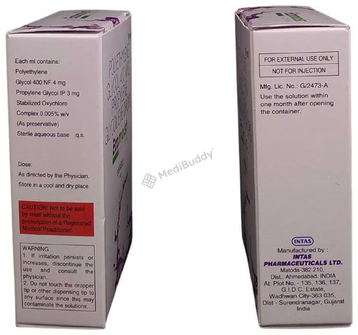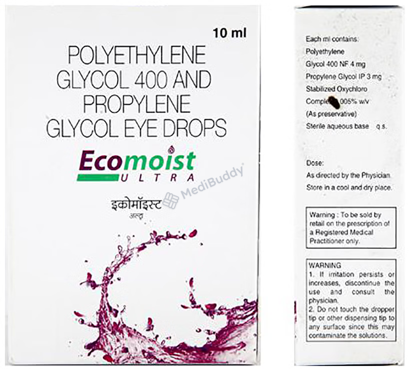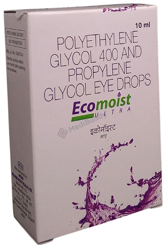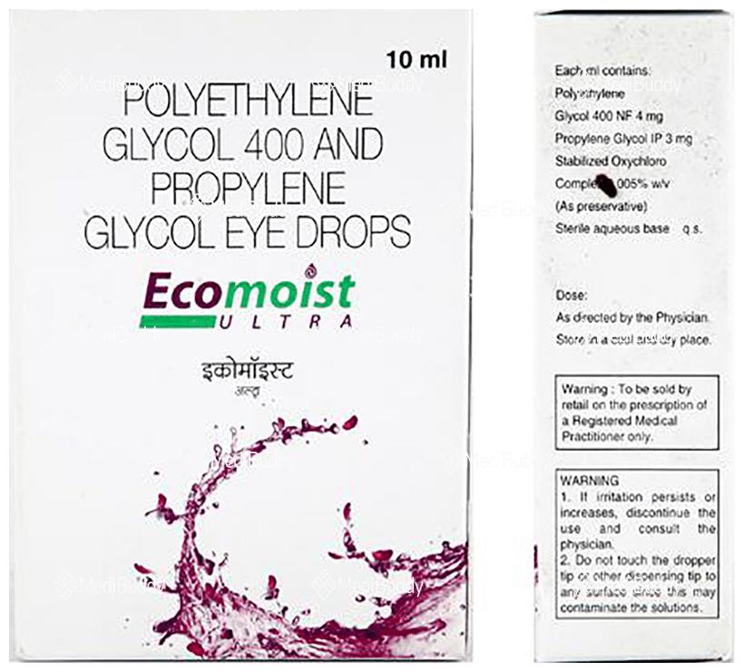 The combination of Polyethylene Glycol and Propylene Glycol in Ecomoist Ultra Eye Drop acts as natural tears, assisting in addressing issues caused by dry eyes. This formulation is very effective in managing eye irritation and burning sensations that may result from dryness, making it a suitable option for individuals dealing with such discomfort.