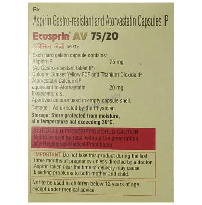 Caution - BreastFeeding Ecosprin AV 75/20 Capsule is probably unsafe during breastfeeding, as it may pass into breastmilk and harm the baby.