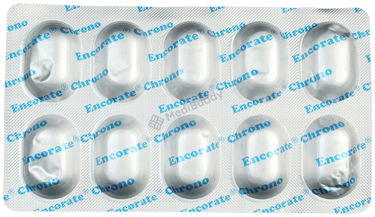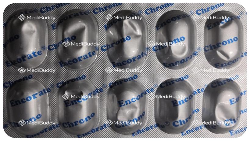 To use Encorate Chrono 600 Tablet CR properly, follow your doctor's instructions on the dose and duration of the medication. Swallow the tablet whole with a glass of water, either with food or 1 hour before eating. It is important not to chew, crush, or break the tablet before swallowing it. Taking Encorate Chrono 600 Tablet CR with food helps improve absorption and reduces the risk of stomach upset. Remember to follow your doctor's advice carefully to ensure the medication works effectively and safely for you.