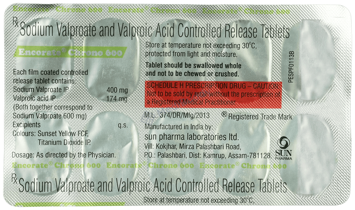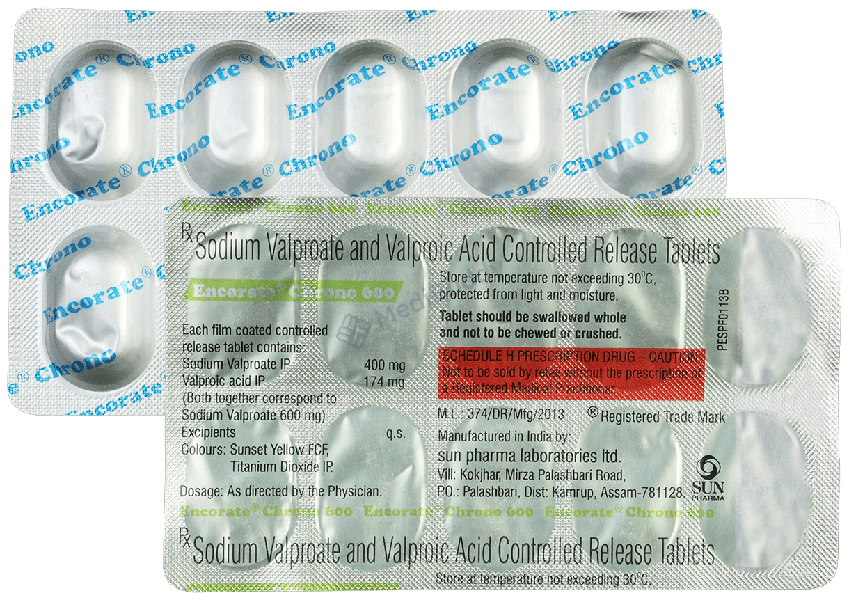Encorate Chrono 600 Tablet CR is a medication that contains a combination of two medicines used to treat epilepsy, a neurological disorder characterized by recurrent seizures or fits. These tablets work by controlling the abnormal activity of the brain, relaxing the nerves, and ultimately preventing seizures. The medication needs to be taken with food, and the dosage will be determined by your doctor. It may take some time for the medicine to show its full effect, so it is important to take it regularly as prescribed. Do not stop taking the medication abruptly, even if you start feeling better, unless advised by your doctor as it may lead to an increase in seizures or worsening of bipolar disorder symptoms.