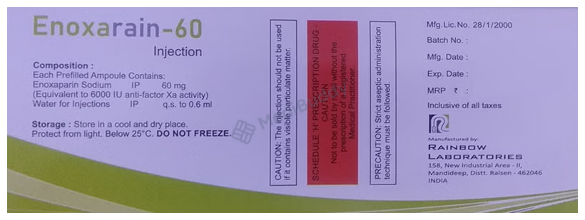 Additionally, before receiving Enoxarain 60 Injection, it is vital to inform your doctor if you have a history of stomach ulcers, recent stroke, diabetes, diabetic retinopathy, recent brain or eye surgery, being underweight or overweight, or if you have high blood potassium levels (hyperkalemia). Consulting with your healthcare provider about these conditions ensures the safe and appropriate use of the medication.