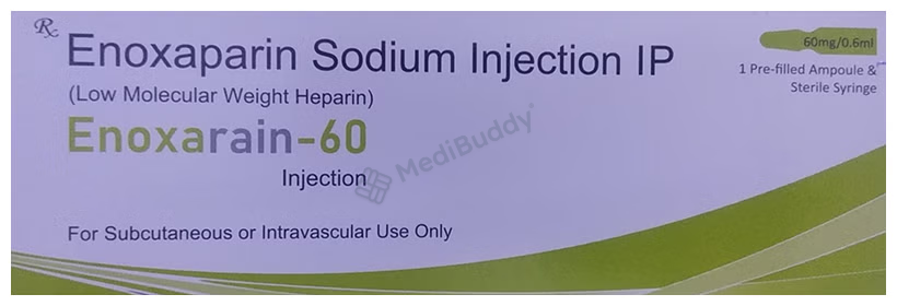 Enoxarain 60 Injection is used to prevent and treat harmful blood clots in conditions like deep vein thrombosis and pulmonary embolism. It helps prevent new clots from forming and stops existing clots from growing larger. This medication is administered under the skin by a healthcare professional based on your medical condition, response to treatment, age, and weight. It is crucial to continue using Corparin 60 even if symptoms are not present, as stopping abruptly may increase the risk of blood clots. Side effects may include injection site pain, bleeding, and various other symptoms. Consult a doctor if concerned.