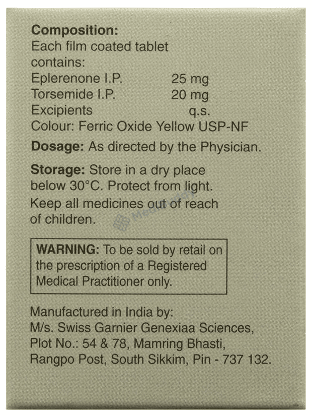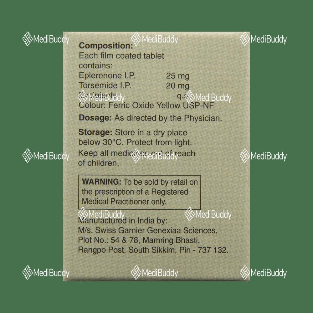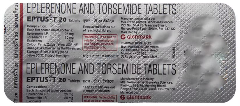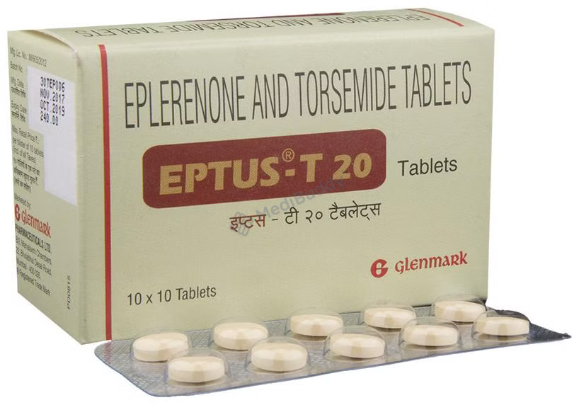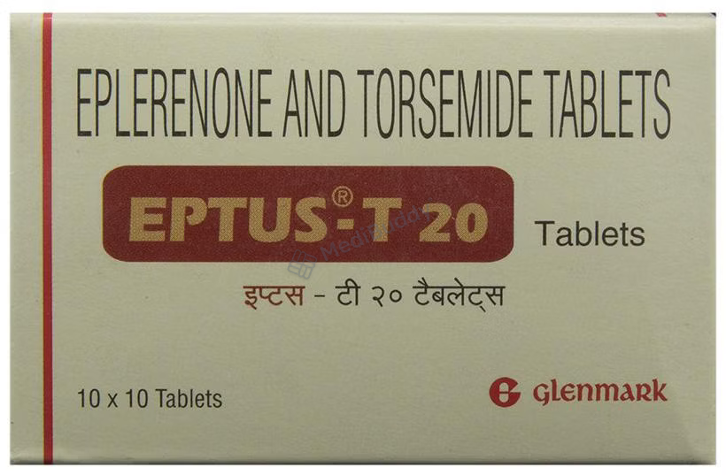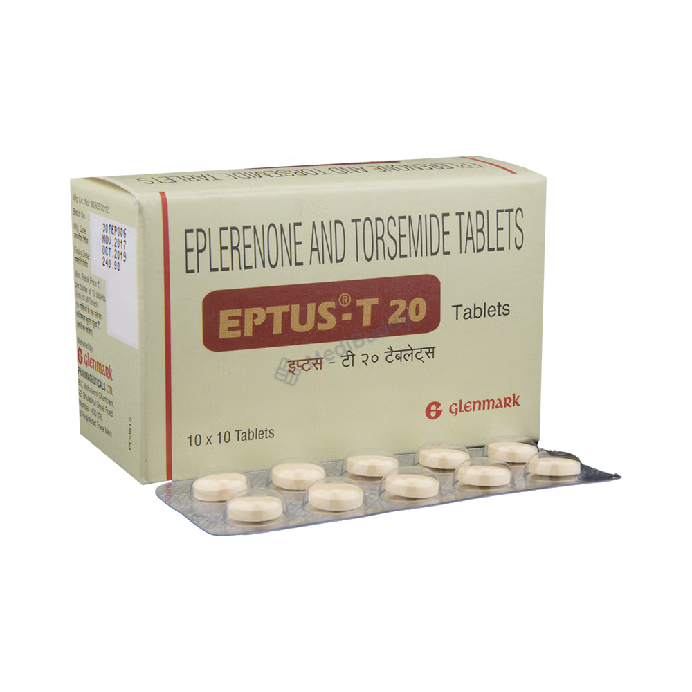 Eptus-T 20 Tablet is a medication used to treat congestive heart failure post-myocardial infarction (heart attack) and hypertension. It is a combination of two medicines - Eplerenone and Torsemide. Eptus-T 20 Tablet belongs to a class of medicines called diuretics, also known as water pills, which work by removing excess water from the body. This helps reduce fluid levels in the body, relieving conditions such as oedema (fluid retention) associated with pulmonary hypertension, heart failure, and hepatic cirrhosis.
