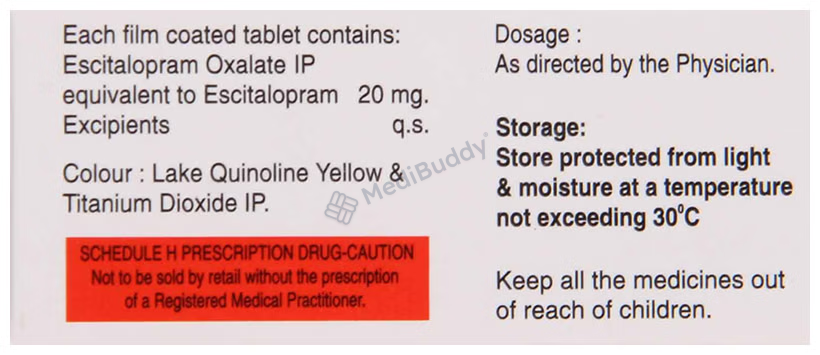 Overall, Escipra 20 Tablet serves as a valuable option in the management of depression and related mental health conditions, offering relief by targeting neurotransmitter imbalances in the brain. Adhering to the prescribed dosage and discussing any concerns with your doctor can help optimize the benefits of this medication while minimizing potential risks.