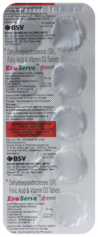 Overall, Evaserve Tablet 10's falls under the category of sex steroid hormones used in the management of female infertility. By helping to maintain hormonal balance, stimulating endocrinal functions related to egg cells, and enhancing fertility rates, this medication offers a promising approach to addressing challenges related to conception. With its unique composition of Dehydroepiandrosterone, Folic acid, and Vitamin D3, Evaserve Tablet 10's not only aids in fertility but also contributes to bone health and density. Should any side effects like oily skin, mood changes, or sweating occur, they are typically mild and transient, but it is advisable to consult your doctor if they persist. Through open communication with your healthcare provider and adherence to prescribed guidelines, Evaserve Tablet 10's can be a valuable component in the journey towards overcoming female infertility.