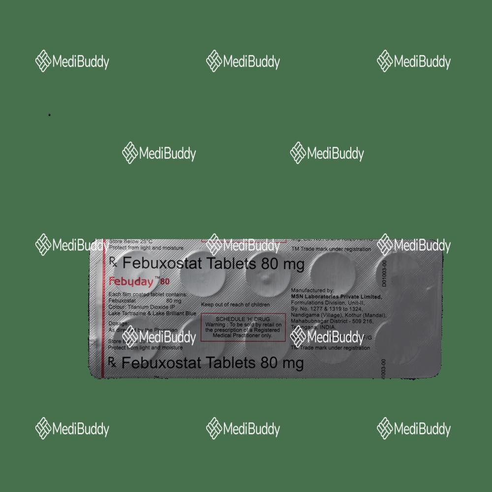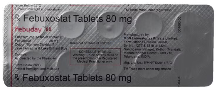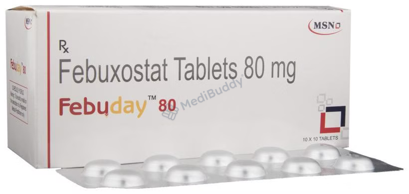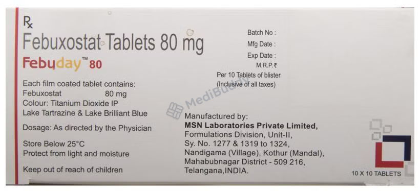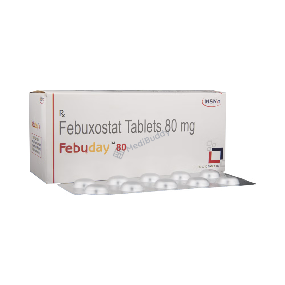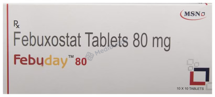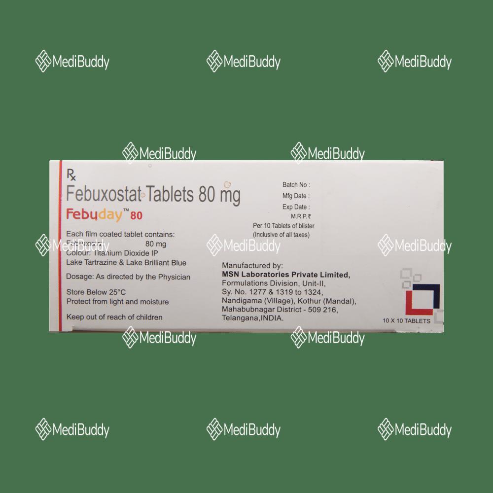 Febuday 80 Tablet is a medication specifically designed to treat and prevent gout, a condition that occurs due to an excess of uric acid in the body forming crystals around the joints, leading to painful and swollen joints. This medication effectively helps in keeping uric acid levels low, reducing the risk of gout attacks or flares.