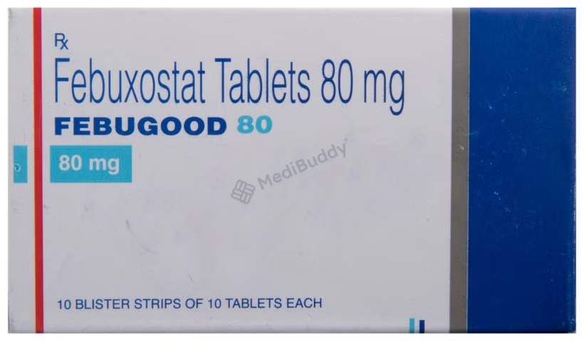 Febugood 80 Tablet is used to prevent and treat gout, a condition that occurs due to high levels of uric acid in the body. When this excess uric acid forms crystals around the joints, it leads to painful and swollen joints. This medicine helps by keeping uric acid levels low, preventing the formation of crystals, and reducing the severity of gout symptoms. It is essential to take the medication regularly as prescribed by your doctor, even when not experiencing a gout attack, to avoid worsening symptoms. Making dietary changes and staying hydrated can also help manage gout.