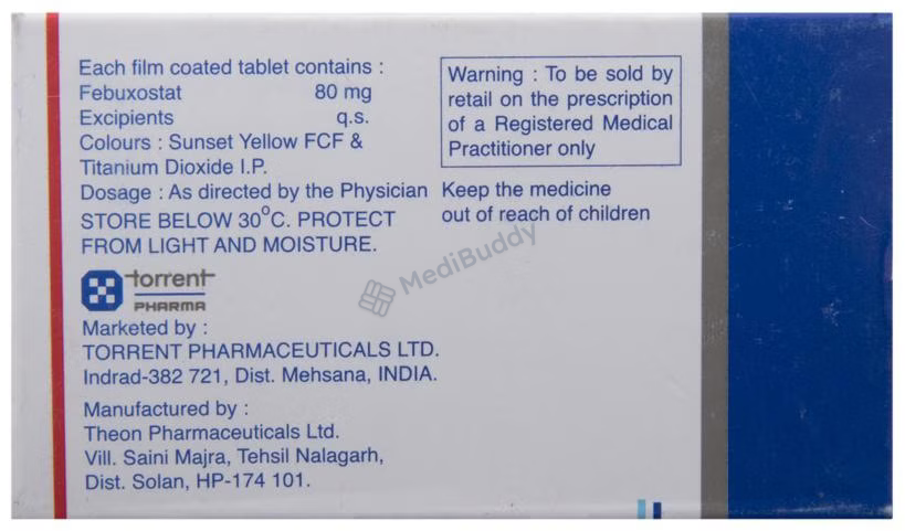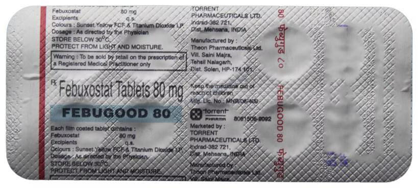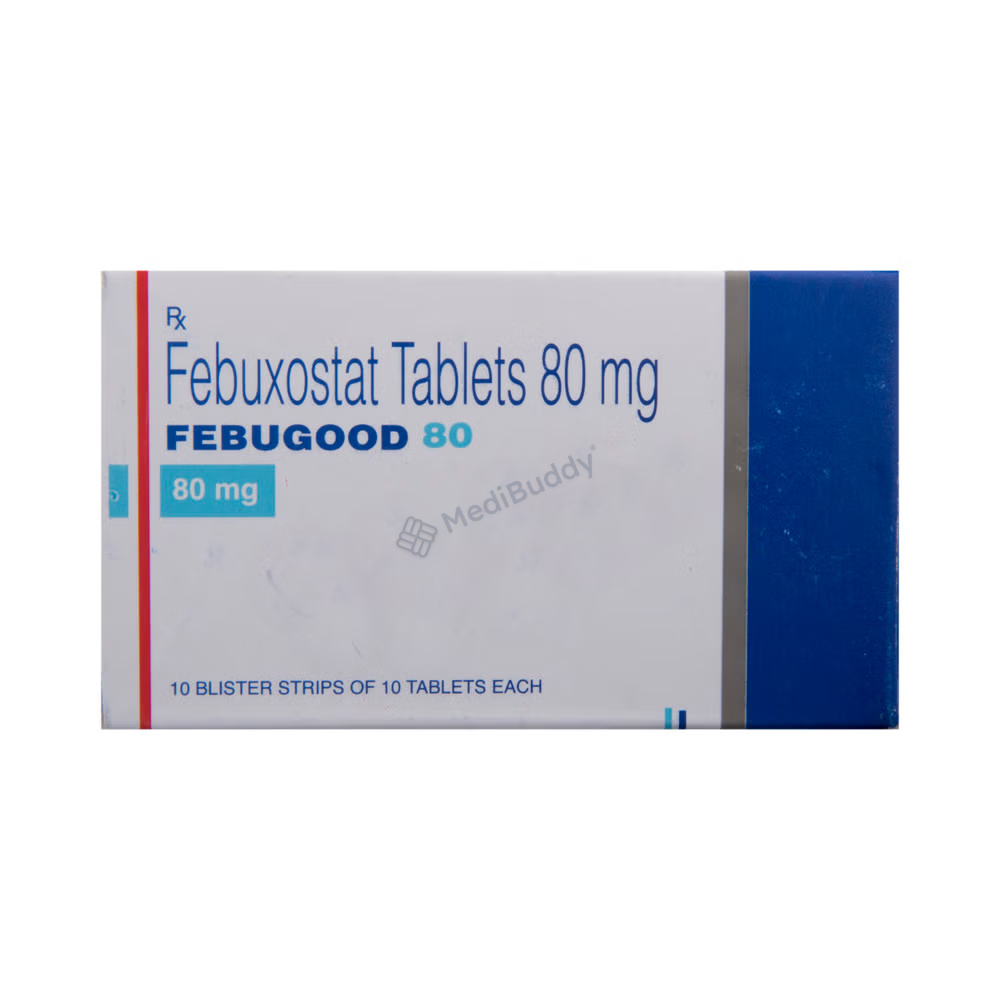 Febugood 80 Tablet is a medication used to treat and prevent gout, a condition caused by high levels of uric acid in the body leading to painful and swollen joints due to crystal formation. This tablet is an anti-gout medication belonging to the xanthine oxidase inhibitors class, which helps prevent severe gout attacks. By inhibiting xanthine oxidase enzyme, Febugood 80 Tablet reduces uric acid levels in the body, thereby decreasing pain, swelling, and inflammation associated with gout.