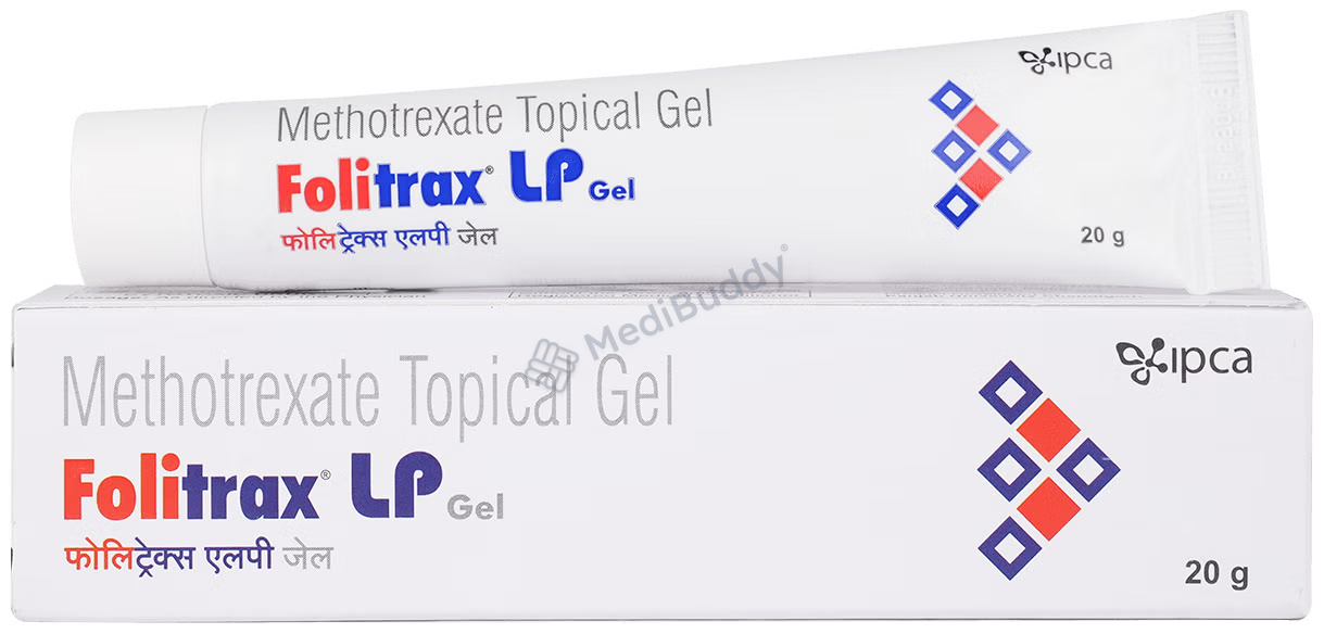 Folitrax LP Gel contains Methotrexate, classified as an anti-metabolite and immunosuppressant, specifically formulated to address severe psoriasis. Psoriasis is a skin disorder characterized by rapid skin cell multiplication, leading to scaling, redness, and skin thickness, often appearing on specific areas like knees, elbows, and scalp.
