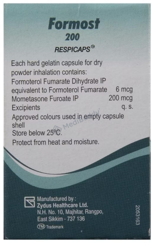 Before consuming Formost 200 Respicap, it's important to be aware of certain guidelines. This medicine is used for asthma and COPD treatment by relaxing air passage muscles for easier breathing. Your doctor will advise on usage frequency, noting that effectiveness may take a few weeks. It's crucial to use the medication regularly, even without symptoms, to prevent worsening of asthma or COPD. In case of sudden asthma attacks, a quick-relief inhaler should be used instead. Correct inhaler technique is vital for optimal results. Common side effects like nausea, headache, and increased heart rate may occur, but persistent symptoms should prompt a discussion with your doctor. Rinsing the mouth and avoiding triggers can help mitigate these effects. Special care is needed during pregnancy or breastfeeding, and informing your doctor about kidney or liver conditions is crucial for appropriate dosing. Be cautious and seek advice if concerned about potential serious side effects.