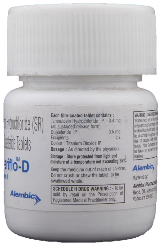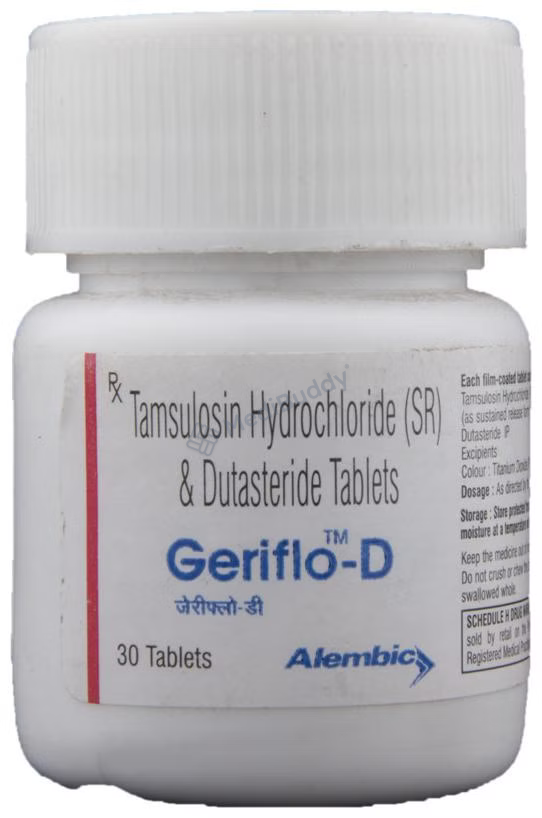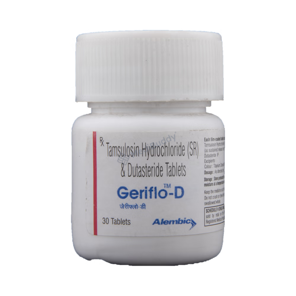 Geriflo-D Tablet SR contains dutasteride and tamsulosin, two active ingredients that work together effectively. Dutasteride works by reducing the size of the prostate gland through blocking the production of a hormone responsible for its growth. On the other hand, tamsulosin relaxes the muscles in the bladder and the prostate, helping to alleviate symptoms and facilitate easier urination. Combining these two medicines can lead to rapid relief of symptoms associated with BPH, ultimately making it easier for individuals to urinate.