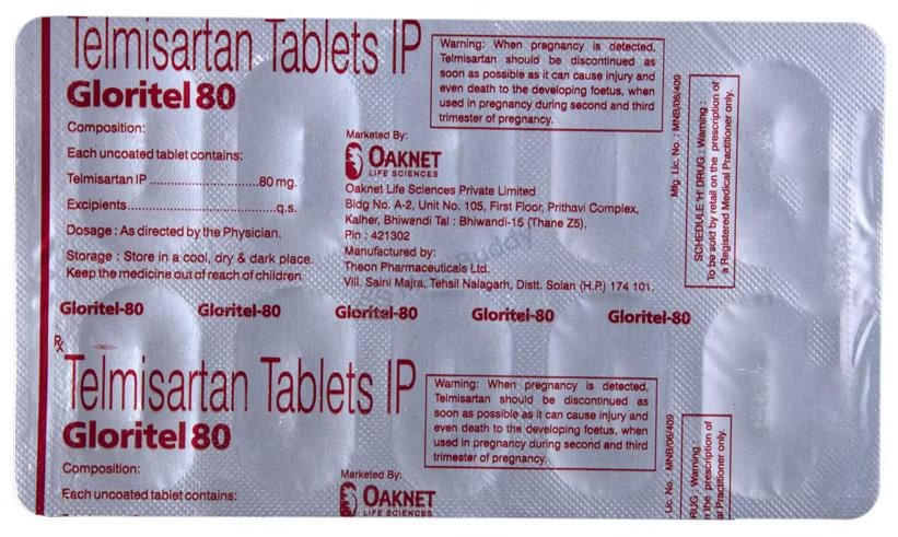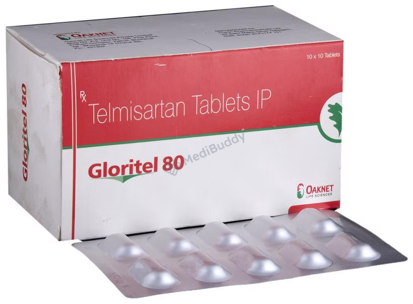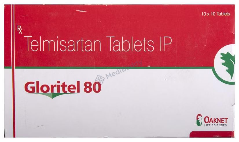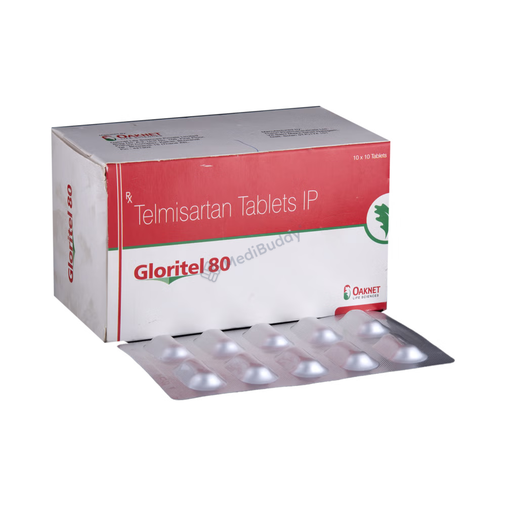 The tablet combines Telmisartan, an angiotensin II receptor antagonist, with Chlorthalidone, a thiazide diuretic or water pill. Telmisartan relaxes and widens blood vessels, while Chlorthalidone prevents excessive salt absorption in the body, thus reducing blood pressure and averting potential heart diseases, strokes, and fluid retention. It is advisable to swallow Gloritel 80 Tablet whole with water and as per your doctor's guidance. Although manageable, side effects like dizziness, fatigue, skin ulcers, diarrhea, nausea, back pain, and cold/flu symptoms may occur. However, persistent side effects should be reported to your doctor. Refrain from taking potassium supplements or salt substitutes without medical advice to avoid any complications.