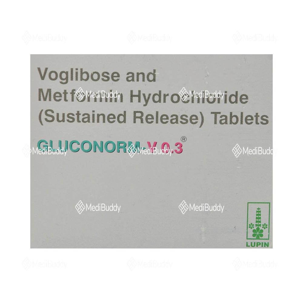Gluconorm-V 0.3 Tablet SR is a medication classified as an anti-diabetic drug, specifically designed to address type 2 diabetes mellitus in adult patients. This medicine is a blend of components that help in managing blood sugar levels among individuals with diabetes. To maximize its benefits, it is advised to consume Gluconorm-V 0.3 Tablet SR regularly with food, at the same time each day as determined by your physician.