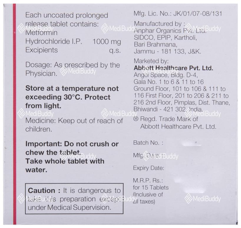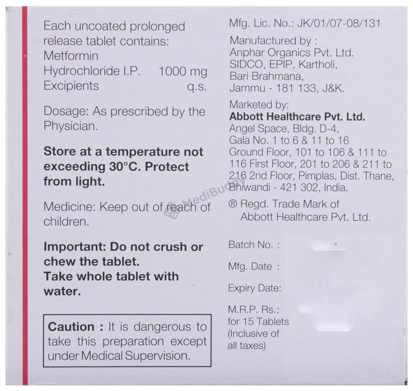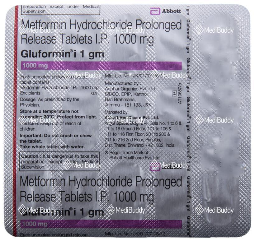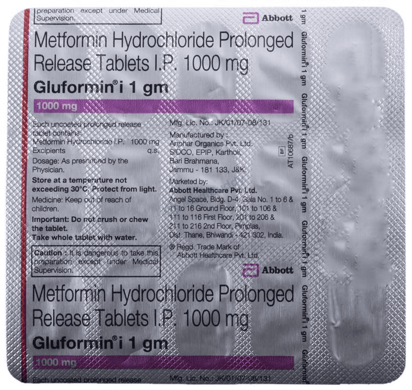 Before consuming Gluformin I 1gm Tablet PR, it is important to note certain precautions. Inform your doctor if you have any allergies to Gluformin I 1gm Tablet PR or any other medications. This tablet is not suitable for children and should be avoided if you are breastfeeding, as the medication may pass into breast milk. If you are pregnant or planning to conceive, consult your doctor beforehand to prevent harm to the unborn baby. Avoid alcohol while taking Gluformin I 1gm Tablet PR, as it can raise the risk of lactic acidosis. Only drive if you are fully alert after taking this medication. Maintain a regular eating schedule and be aware of symptoms of low blood sugar, such as sweating, dizziness, palpitations, and thirst. Carry candies, glucose biscuits, or sugar with you, especially during long journeys, and seek medical advice if you experience any of these symptoms.
