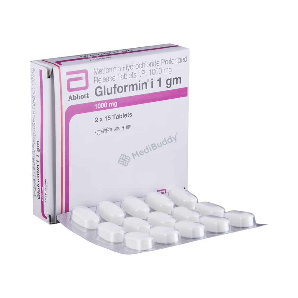 Gluformin I 1gm Tablet PR is a medication prescribed to individuals with type 2 diabetes mellitus to help manage their blood sugar levels and reduce the risk of diabetes-related complications. It is also utilized in treating Polycystic ovary syndrome (PCOS) in women. Taking Gluformin I 1gm Tablet PR with food can help prevent side effects like nausea and abdominal discomfort. It is crucial to take this medicine consistently at the same time each day as advised by your doctor for optimal benefits. It is important not to discontinue the medication without consulting your healthcare provider.