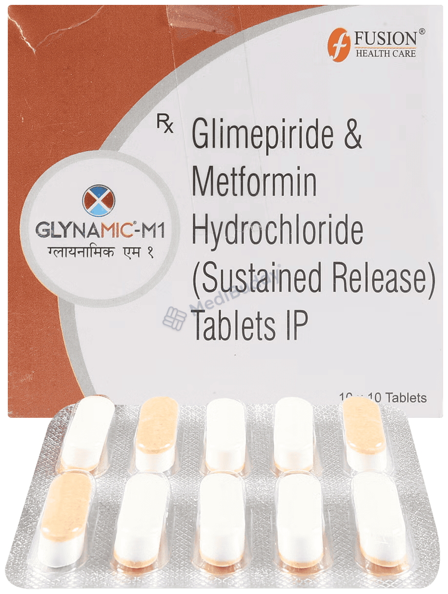 Glynamic M 1mg/500mg Tablet is a powerful combination medicine specifically designed for the treatment of Type 2 diabetes mellitus. By increasing the production of insulin in the pancreas, this medication effectively lowers the amount of glucose in your bloodstream. It is simple to incorporate into your daily routine, requiring just one dose per day. Consistency is key when using Glynamic M 1mg/500mg Tablet - stick to the prescribed dosage to experience its full benefits.