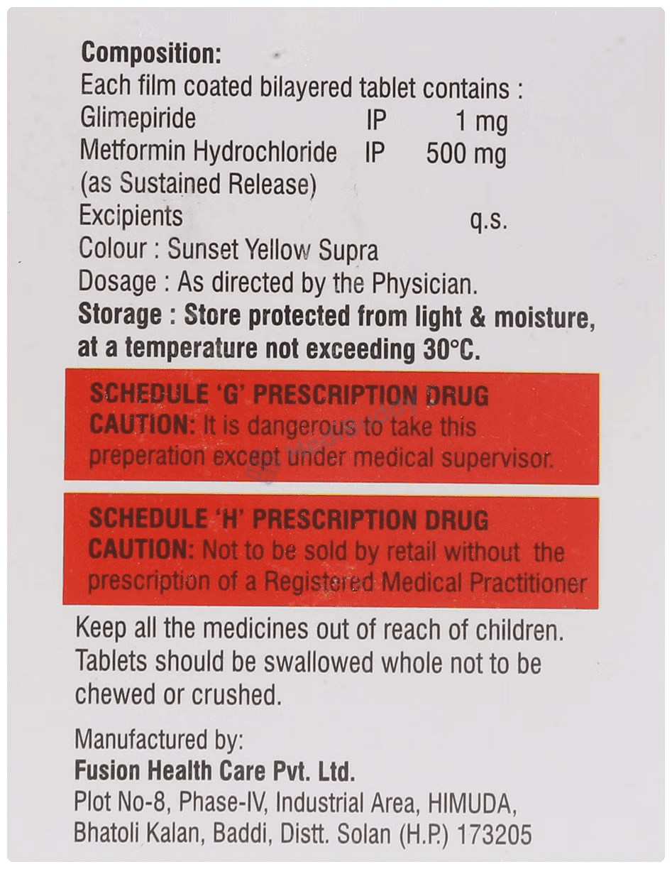 Consumption warning before consuming Glynamic M 1mg/500mg Tablet