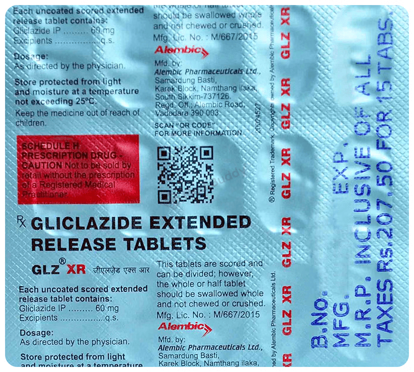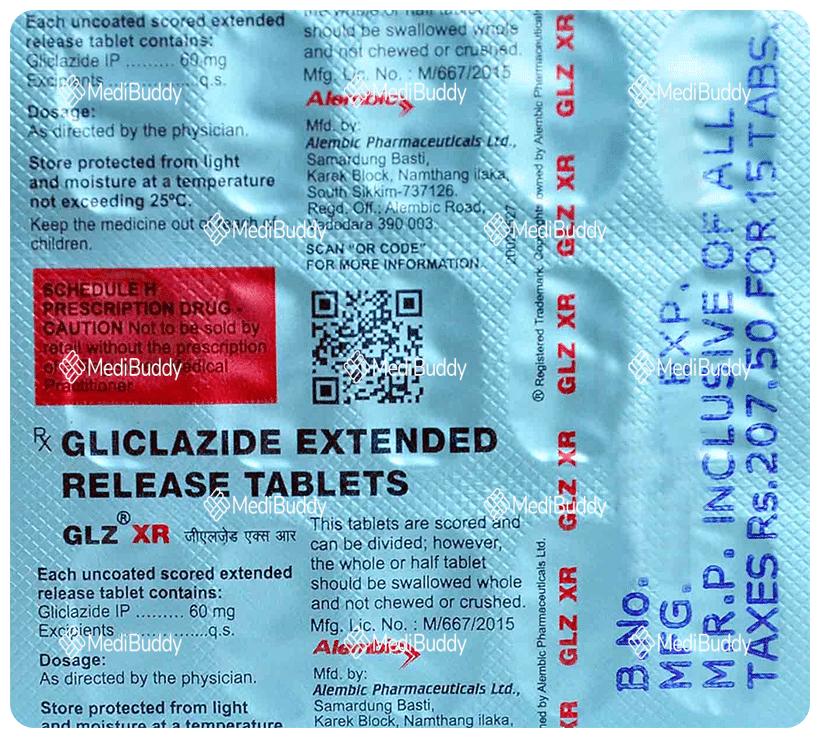 Glz XR Tablet is a medication utilized to manage type 2 diabetes mellitus in adults. It falls under the category of sulfonylureas, which help regulate blood sugar levels in individuals with diabetes. By maintaining blood sugar within a healthy range, Glz XR Tablet can aid in averting severe diabetes-related complications like kidney issues and vision impairment. This medication can be prescribed alone or in conjunction with other treatments, and it is recommended to take it with food regularly at the same time each day for optimal effectiveness.