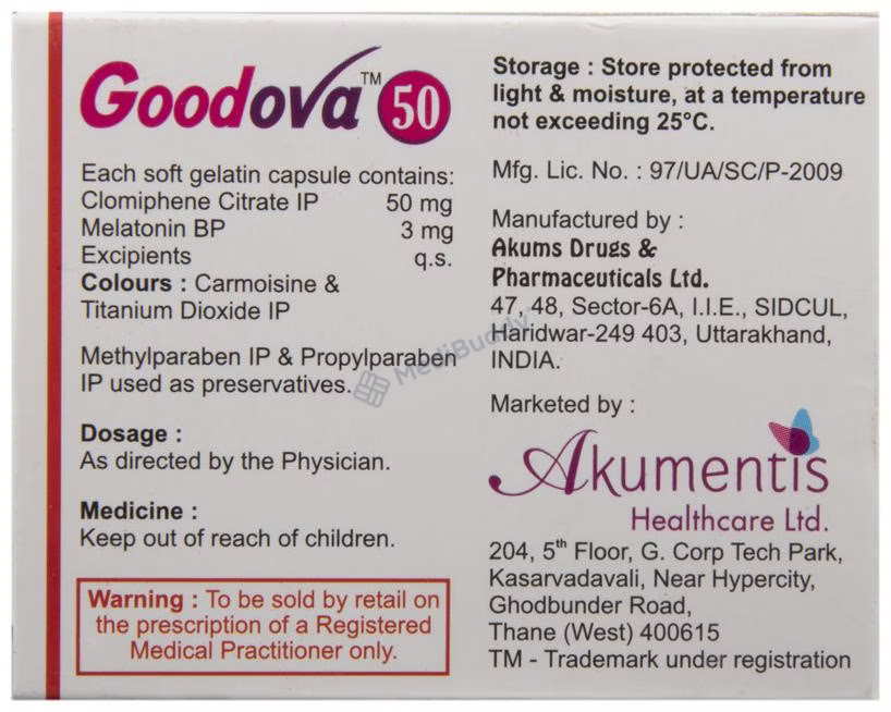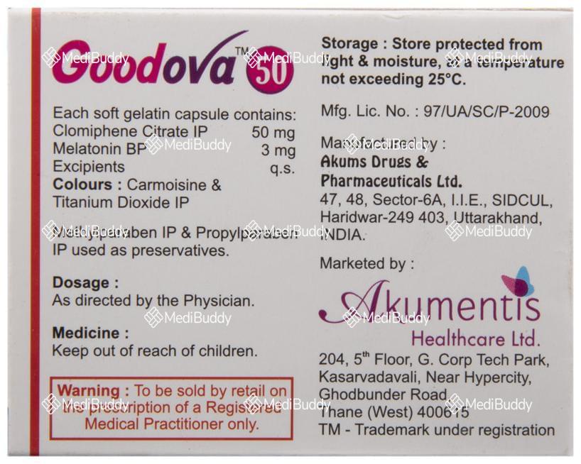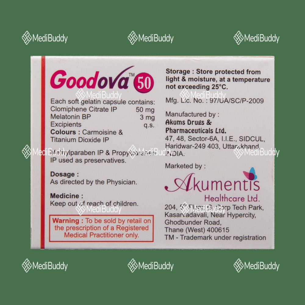 Overall, Goodova 50 Capsule is a valuable medication for women struggling with infertility, offering a comprehensive approach to improving egg quality, supporting ovulation, and increasing the chances of conception. It is essential to follow the prescribed dosage and duration as advised by a healthcare professional to maximize the benefits of this medication.