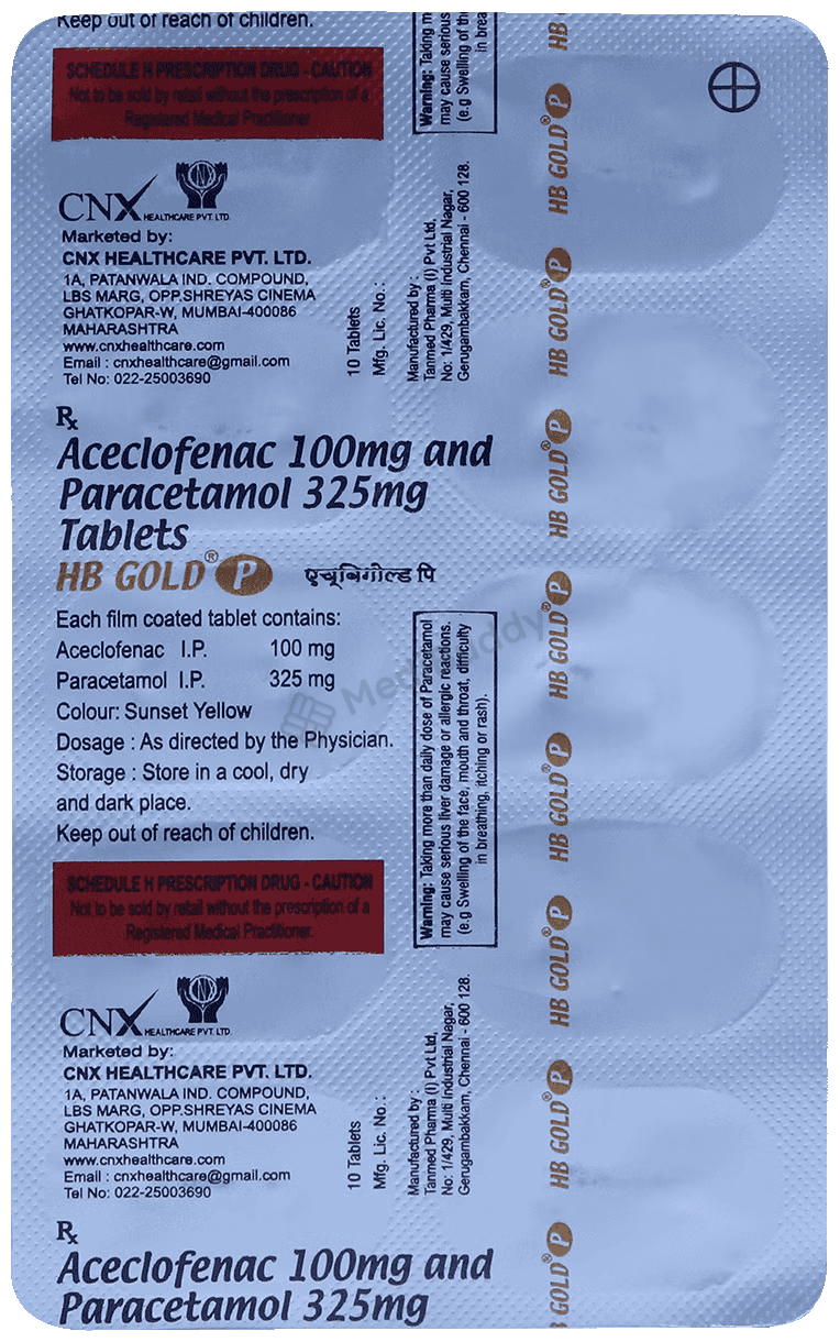 HB Gold P 100mg/325mg Tablet may not be safe to use during pregnancy. Animal studies indicate potential harm to the developing baby. Your doctor will assess the benefits versus risks before prescribing. Consult your doctor before using.