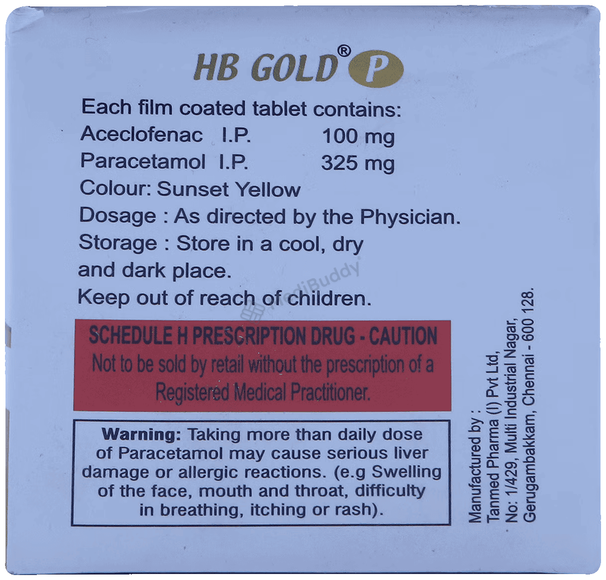 HB Gold P 100mg/325mg Tablet should be used carefully if you have kidney disease. Your doctor may need to adjust the dose. It is not advised for severe kidney disease. Please consult your doctor.