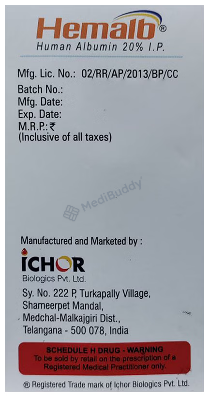 Hemalb Infusion is a medication used to address blood volume loss in the body. The primary purpose of this infusion is to replenish the body fluids that may have been lost due to various reasons such as severe trauma, excessive bleeding, major surgery, or kidney dialysis. Additionally, Hemalb Infusion is beneficial in treating low levels of blood albumin, a crucial component for maintaining overall health and well-being.