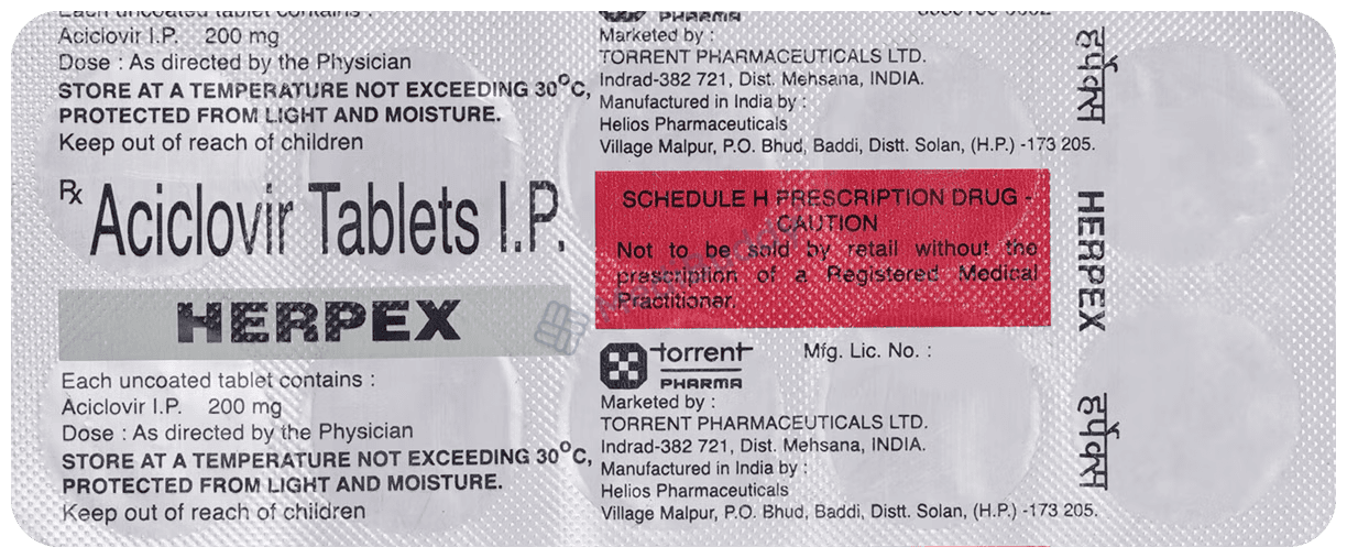 Herpex 200mg Tablet contains Aciclovir, an antiviral component that acts on the virus's DNA in human cells, thus inhibiting viral replication. By providing relief from symptoms and aiding in the healing process, Herpex 200mg Tablet offers significant benefits in managing various viral infections effectively.