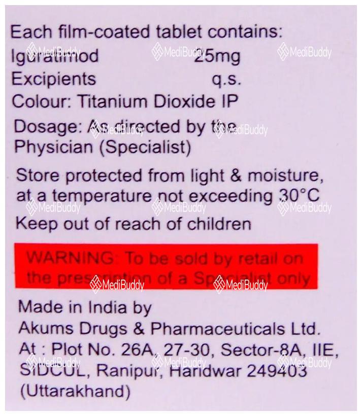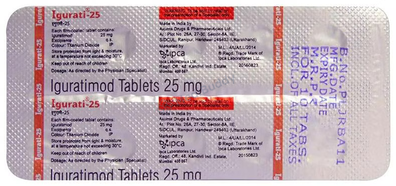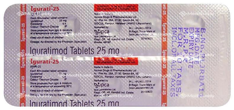 Igurati 25mg Tablet, also known as Igurati 25 Tablet 10's, is a medication belonging to the group of medicines called disease-modifying anti-rheumatic drugs (DMARDs) primarily used to treat rheumatoid arthritis. Rheumatoid arthritis is an autoimmune disease where the body's immune system mistakenly attacks its tissues, leading to joint pain and damage. The disease is characterized by joint inflammation (synovitis), progressive bone destruction, and loss of joint function.