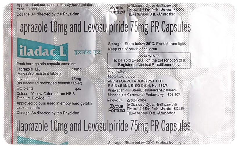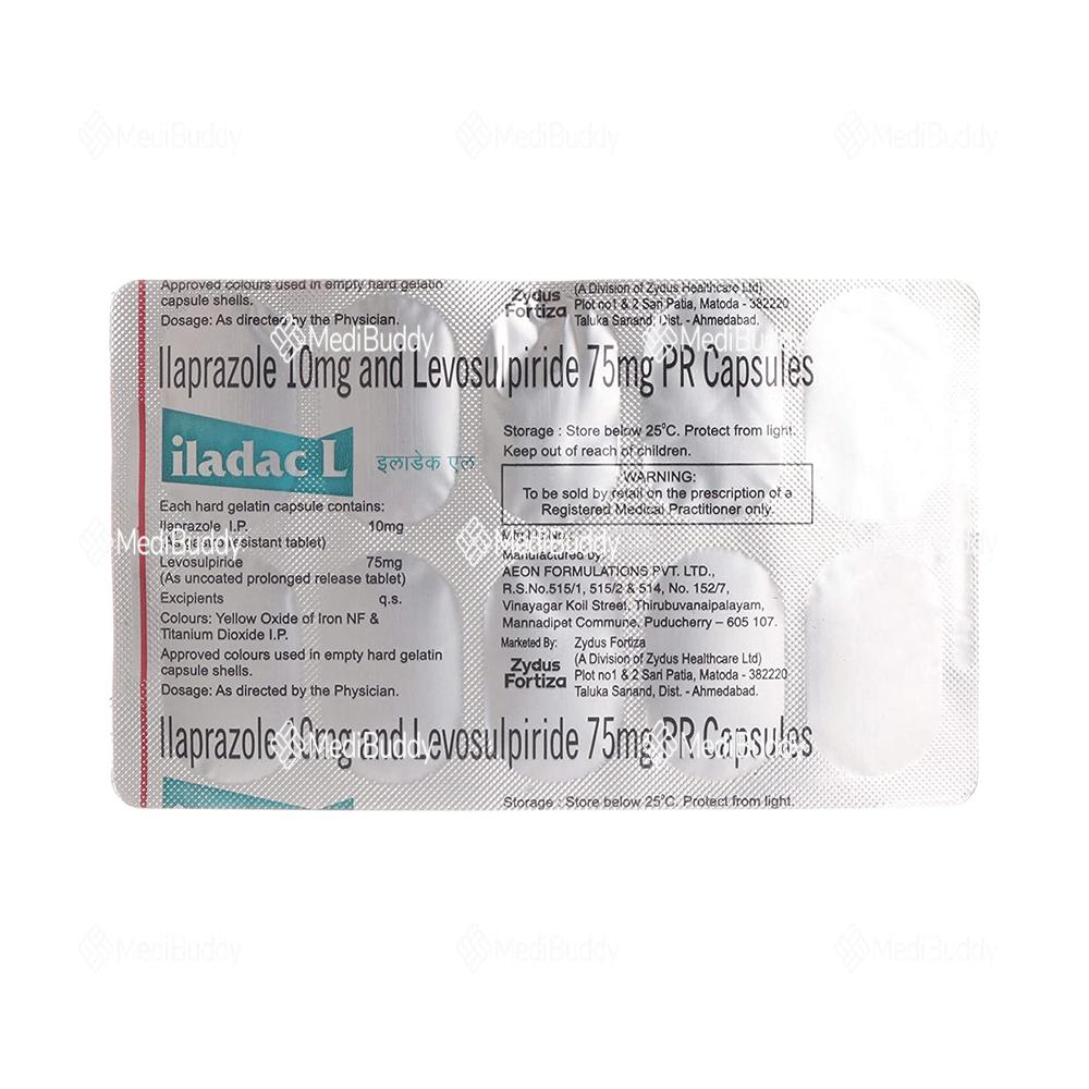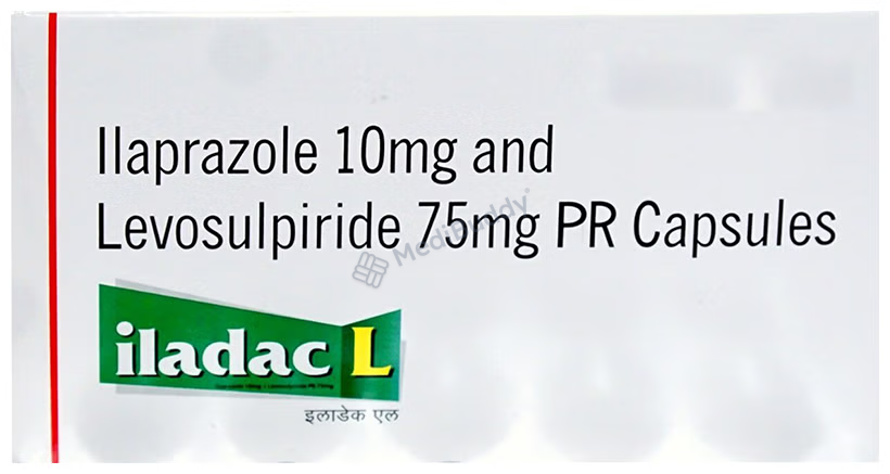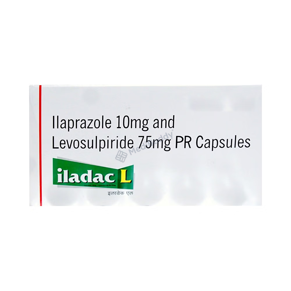 Iladac L Capsule PR is a medication used to treat constipation and gastrointestinal issues such as gastro-oesophageal reflux disease (GERD), acidity, indigestion, heartburn, and peptic ulcers. This combination medicine works by softening stools for easier passage, preventing reflux of stomach acid into the food pipe, and reducing excessive stomach acid production. It contains two active ingredients: Ilaprazole, a proton pump inhibitor, and Levosulpiride, a prokinetic agent. Iladac L Capsule PR should be taken as directed by your doctor, typically without food, and for the prescribed duration to achieve optimal results.
