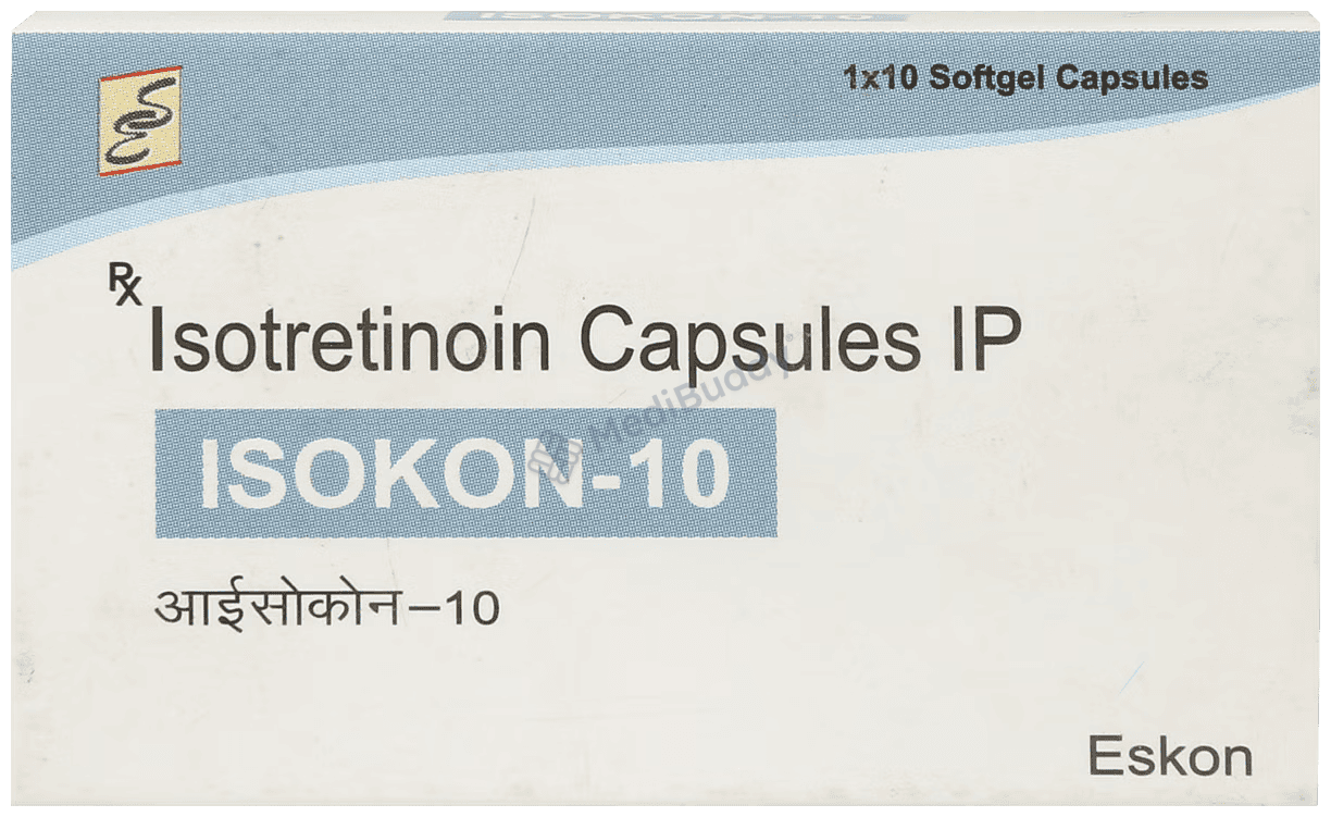 Isokon 10mg Capsule, a retinoid medication, is used to treat severe acne that hasn't improved with other treatments. It works by reducing the production of sebum, which is a natural substance that causes acne. This medicine helps kill acne-causing bacteria, preventing spots and pimples. While it may take a few weeks to see results, continue taking it regularly. Common side effects include dry skin, rash, and increased liver enzymes. These side effects are usually mild and temporary. Isokon 10mg Capsulemay also increase sun sensitivity and cause dryness, so stay hydrated and protect your skin. This medication should be used cautiously during pregnancy.