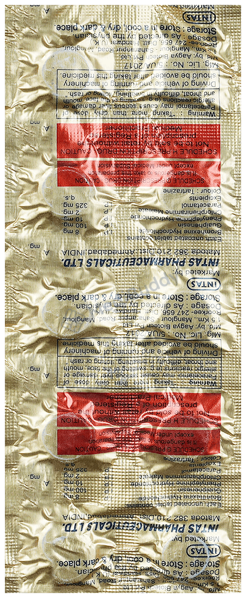 Bromhexine(8mg) + Chlorpheniramine Maleate(2mg) + Guaifenesin(100mg) + Phenylephrine(10mg) + Paracetamol(325mg)