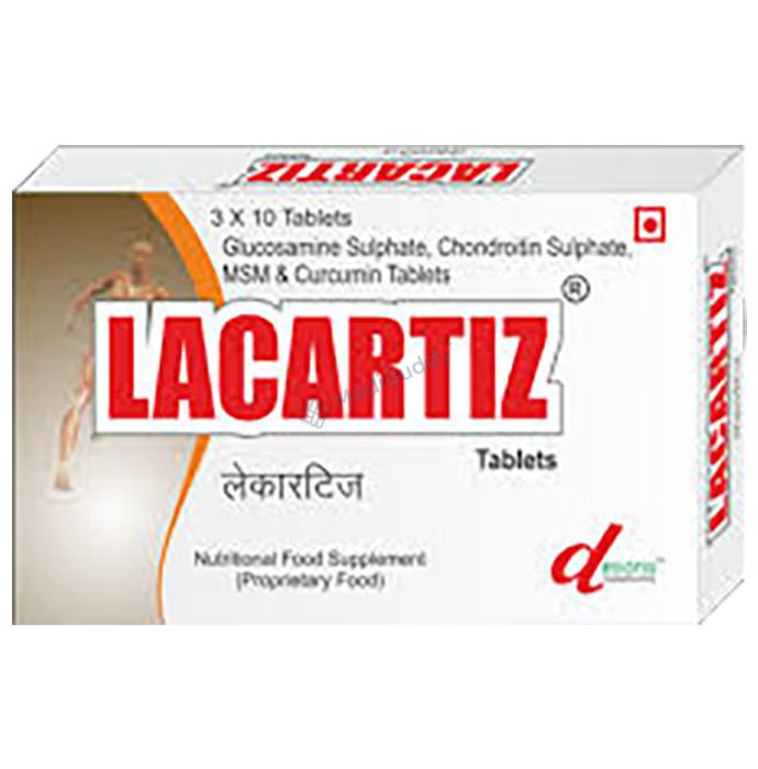 Lacartiz Tablet is a specially formulated bone and joint supplement designed to improve and maintain bone and joint health. This supplement contains a unique blend of key ingredients including Glucosamine Sulphate, Chondroitin Sulphate, and Nano-Curcumin. These ingredients work together to support the strength of bones and joints, making them more resilient and healthier.