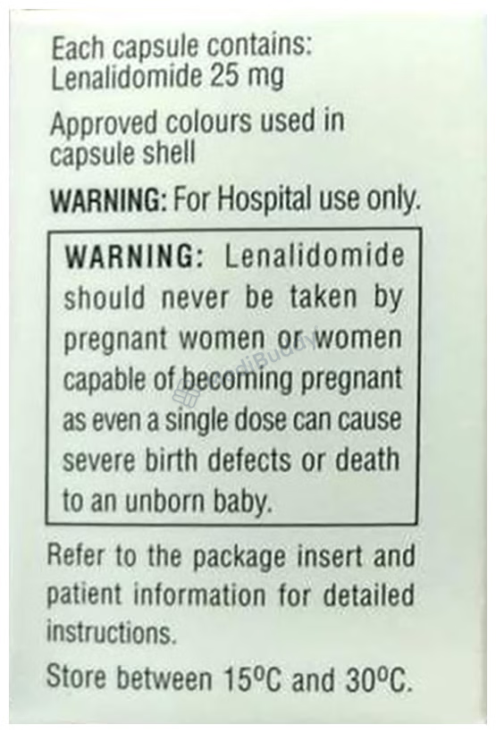 As Lenalid 25 Capsule can interact with other medications, it is crucial to inform your healthcare team about all the medications you are currently taking. This medicine is not recommended during pregnancy or while breastfeeding, and both males and females are advised to use effective contraception during treatment to prevent pregnancy. Additionally, staying well-hydrated is advised while taking this medication to help maintain overall health and minimize potential side effects.