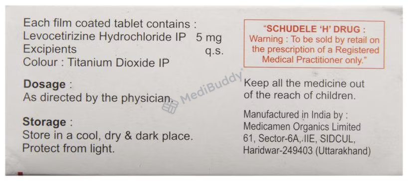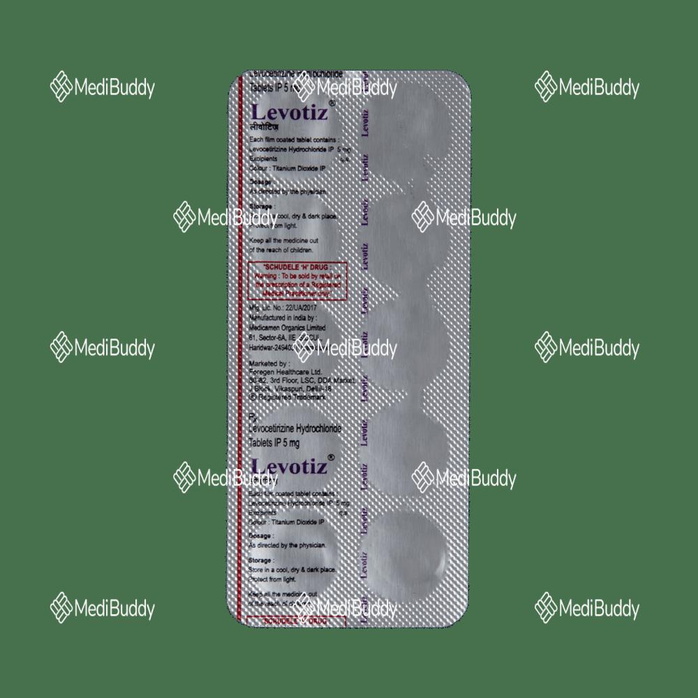 LEVOTIZ 5MG TABLET containing Levocetirizine is another variant used to address symptoms of allergic rhinitis and urticaria in adults and children aged six years and above. The tablet helps manage nasal congestion, itchy nose, sneezing, red, watery, or itchy eyes, as well as allergic skin conditions causing itchy raised patches. Levotiz 5mg is typically taken during evenings or at bedtime, with or without meals, following the physician's instructions. Consider informing your doctor about any liver or kidney problems, epilepsy, or difficulties in urination before starting this medication.