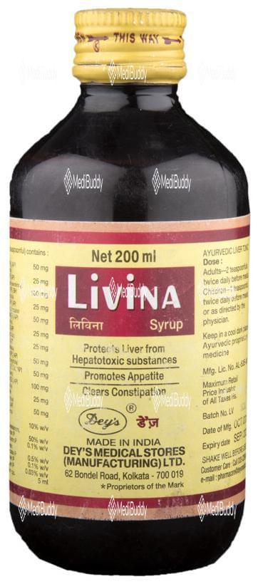 The recommended dosage for Livina Syrup is 1 teaspoonful twice daily, or as advised by a healthcare professional. It is important to note that this herbal composition is completely safe to use, as it is free from any side effects. For optimal results and safety, it is recommended to use Livina Syrup under medical supervision to ensure proper dosage and monitoring of liver health.