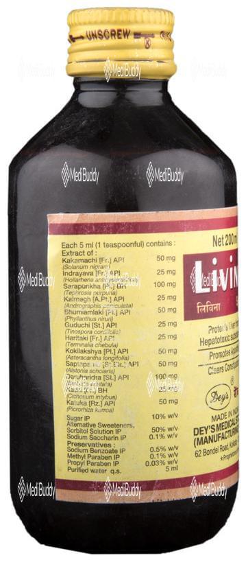 Livina Syrup is a natural herbal remedy that comprises various plant extracts such as Kakamachi, Indrayava, Sharpunkha, Haritaki, Kakilakshya, Saptaparna, Daruharidra, Kasni, and Sharkara. These natural ingredients work together to provide effective benefits for liver health. Livina Syrup has been found to be particularly helpful in reducing levels of SGOT, SGPT, ALP, serum bilirubin (both total and direct), and BUN.