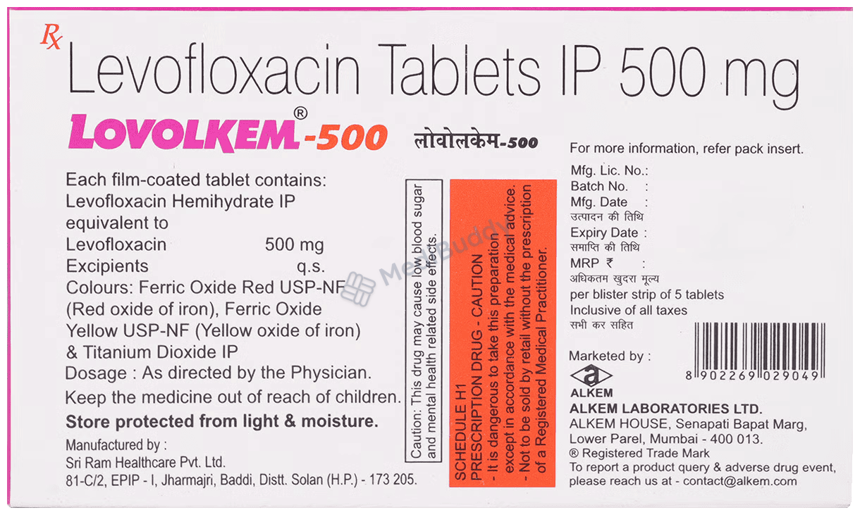Lovolkem 500 Tablet is a potent antibiotic utilized in the management of bacterial infections affecting various parts of the body. Effective against a wide range of bacteria, this medication is especially beneficial in treating acute pneumonia, bronchitis, skin infections, and urinary tract infections. Bacterial infections occur when harmful bacteria enter the body and start multiplying rapidly, releasing toxins that can cause illness. Lovolkem 500 Tablet works by inhibiting enzymes responsible for bacterial multiplication, thereby eradicating the bacteria from the body.