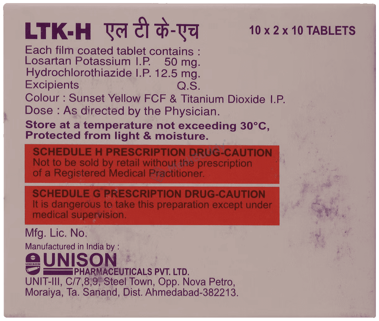 Before taking LTK-H Tablet, it's crucial to heed certain warnings. This medication, a combination of two drugs, is utilized to manage high blood pressure, guarding against potential heart issues like heart attacks, strokes, and kidney problems if left untreated. It can be consumed with or without food, but the dosage must align with your specific condition and response. Maintain a consistent daily intake time as advised by your physician. Due to its diuretic content, which increases urination, avoid taking it close to bedtime. Continuous use is paramount until your doctor advises otherwise, as stopping may heighten the risk of heart attack or stroke. Embrace regular intake for optimal efficacy, even if symptoms improve, as high blood pressure is often asymptomatic. Possible side effects, mainly dizziness, might occur, signaling the need for medical consultation to discuss alterations in dosage or medications. Not recommended during pregnancy, this medication warrants caution for individuals with particular health concerns such as kidney or liver issues, heart ailments, or diabetes. Refrain from alcohol consumption, which can intensify the medicine's blood pressurelowering effects and potentially instigate adverse reactions.