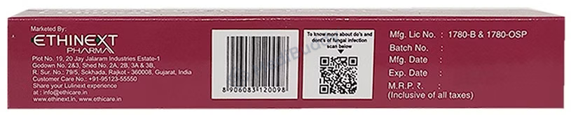 Lulinext Cream is used to treat various fungal skin infections like athlete’s foot, Dhobie Itch, thrush, ringworm, and dry, flaky skin. It works by eliminating the fungi that cause these infections. Follow your doctor's instructions on dosage and duration, and avoid using more than prescribed. Improvement is typically seen after 2 to 4 weeks of use. Maintain cleanliness and dryness in the affected area. Common side effects include burning, irritation, itching, redness, dryness, peeling, and blisters. Contact your doctor if side effects persist or worsen, or if you experience any signs of an allergic reaction.