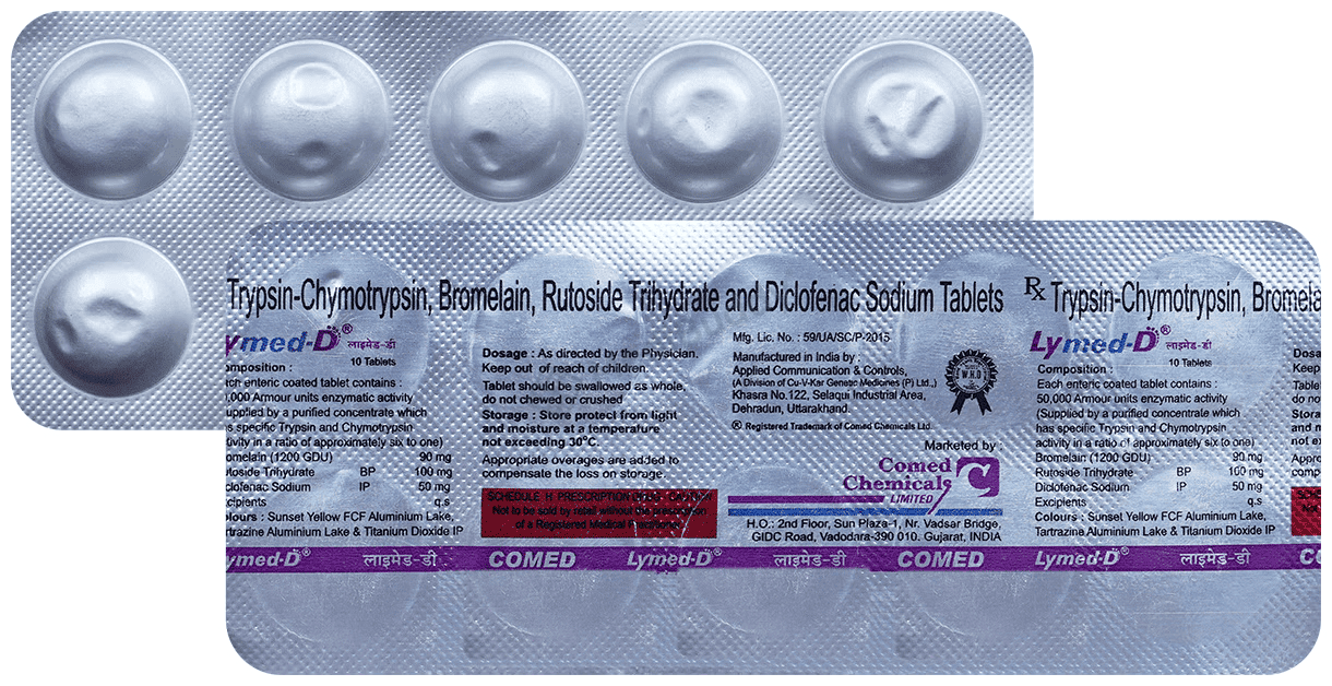 Bromelain(90mg) + Diclofenac(50mg) + Rutoside(100mg) + Trypsin Chymotrypsin(50000AU)