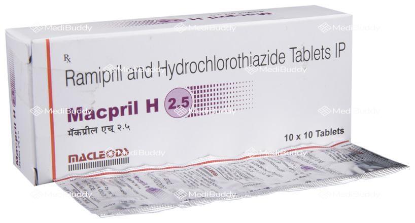 Macpril H 2.5 Tablet is a medication used for treating hypertension, commonly known as high blood pressure. It is a combination of two medicines designed to help regulate blood pressure when a single medication alone is not enough. Managing hypertension is essential as it can lower the risk of future heart attacks and strokes. Macpril H 2.5 Tablet should be taken as directed by your healthcare provider, with or without food. It is recommended to take it in the morning to avoid frequent urination at night.